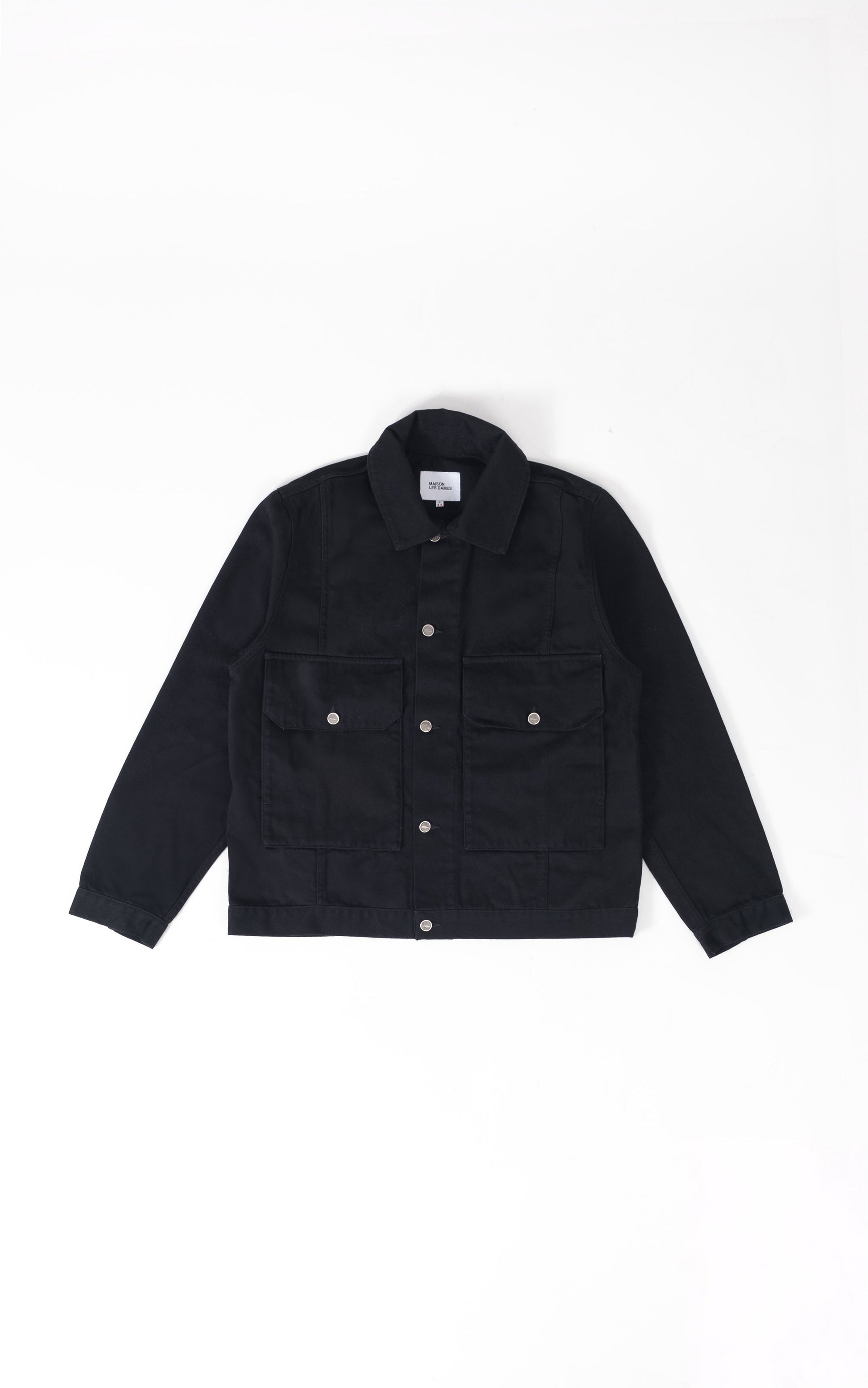 The Pantin Jacket is made from 100% GOTS certified denim from Morocco. It is a thick and resistant fabric, which guarantees excellent hold to the jacket. The cut is straight, there are a set of cutouts and yokes on the front and back of the jacket. There are also two flap pockets on the front of the jacket, with an opening on the side. The buttons are embossed with the “MAISON LES DAMES” logo, and the left pocket is embroidered.