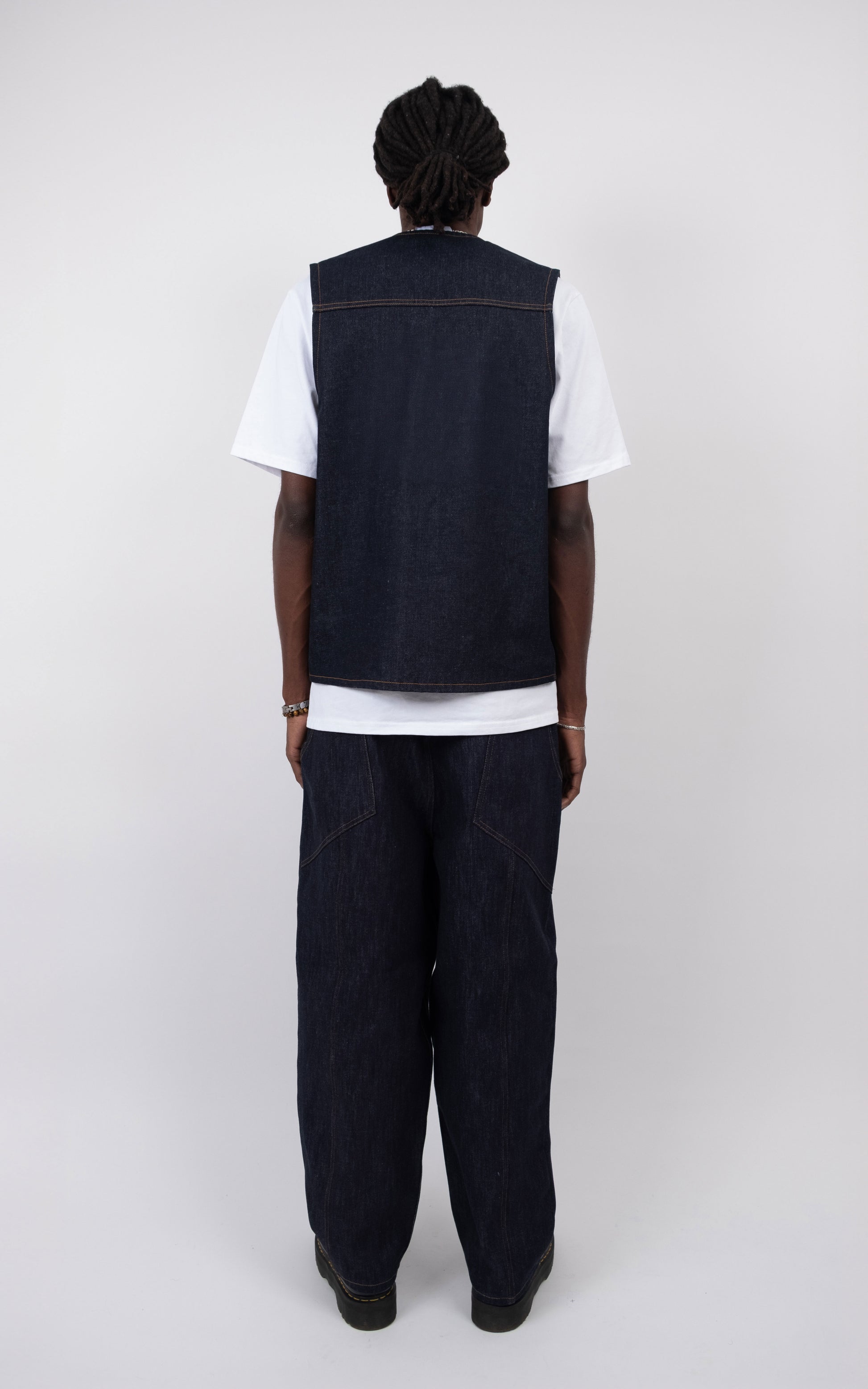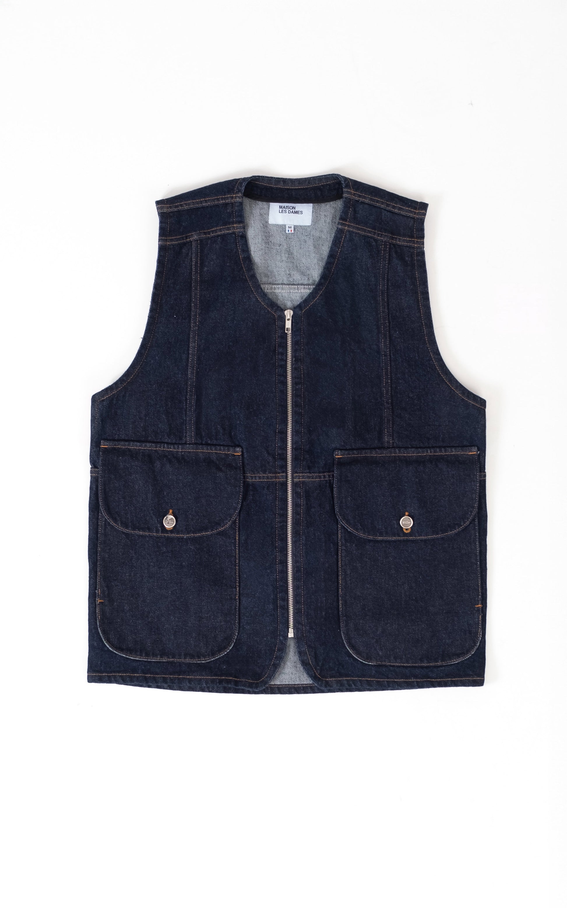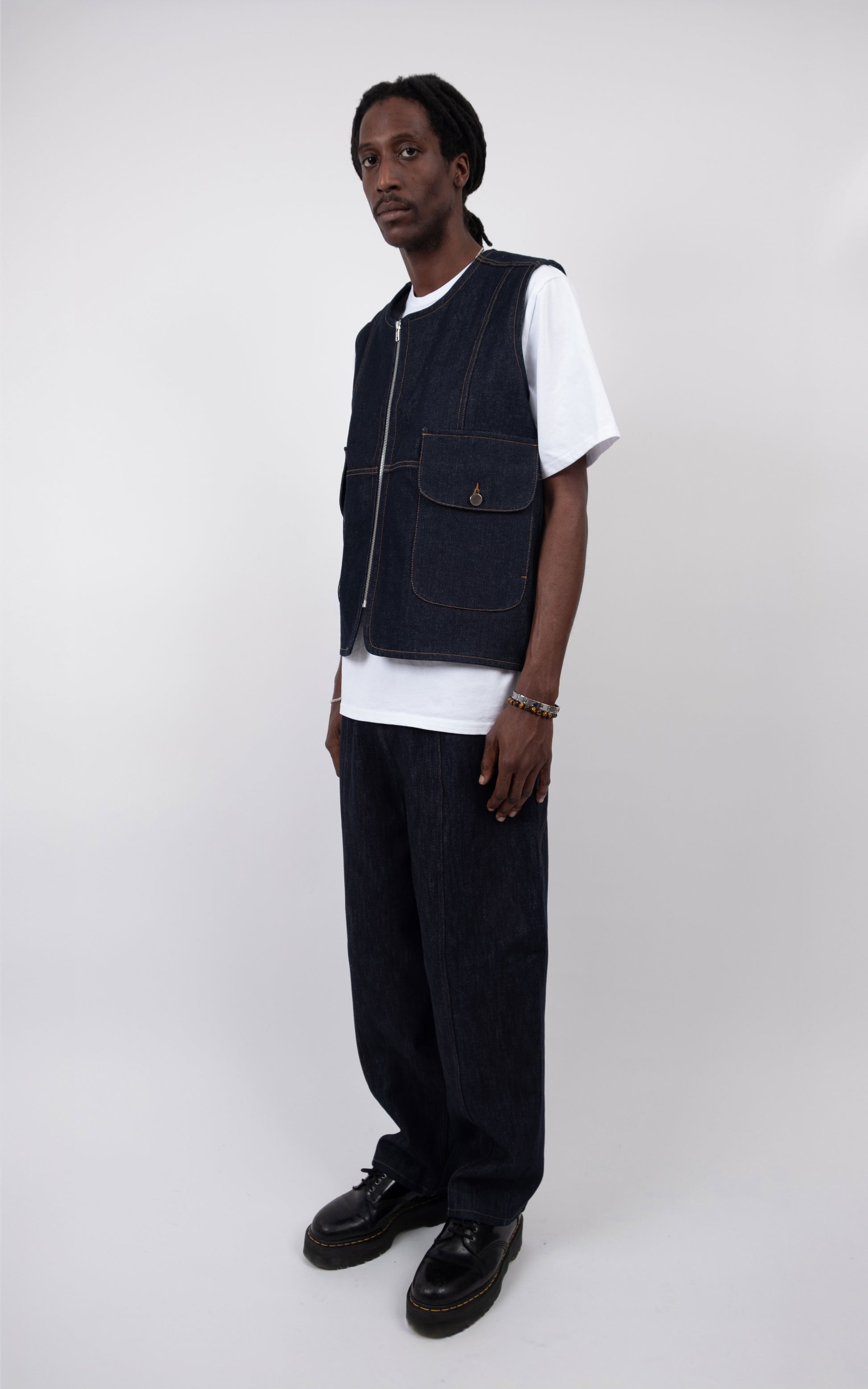 Made from 100% GOTS-certified cotton denim straight from Morocco, it relies on a thick, durable fabric for an impeccable fit. With its two flap pockets on the front and their practical side opening, it is as functional as it is stylish. The denim has only undergone a single wash, offering a pleasant flexibility and revealing this deep indigo blue that makes all the difference.