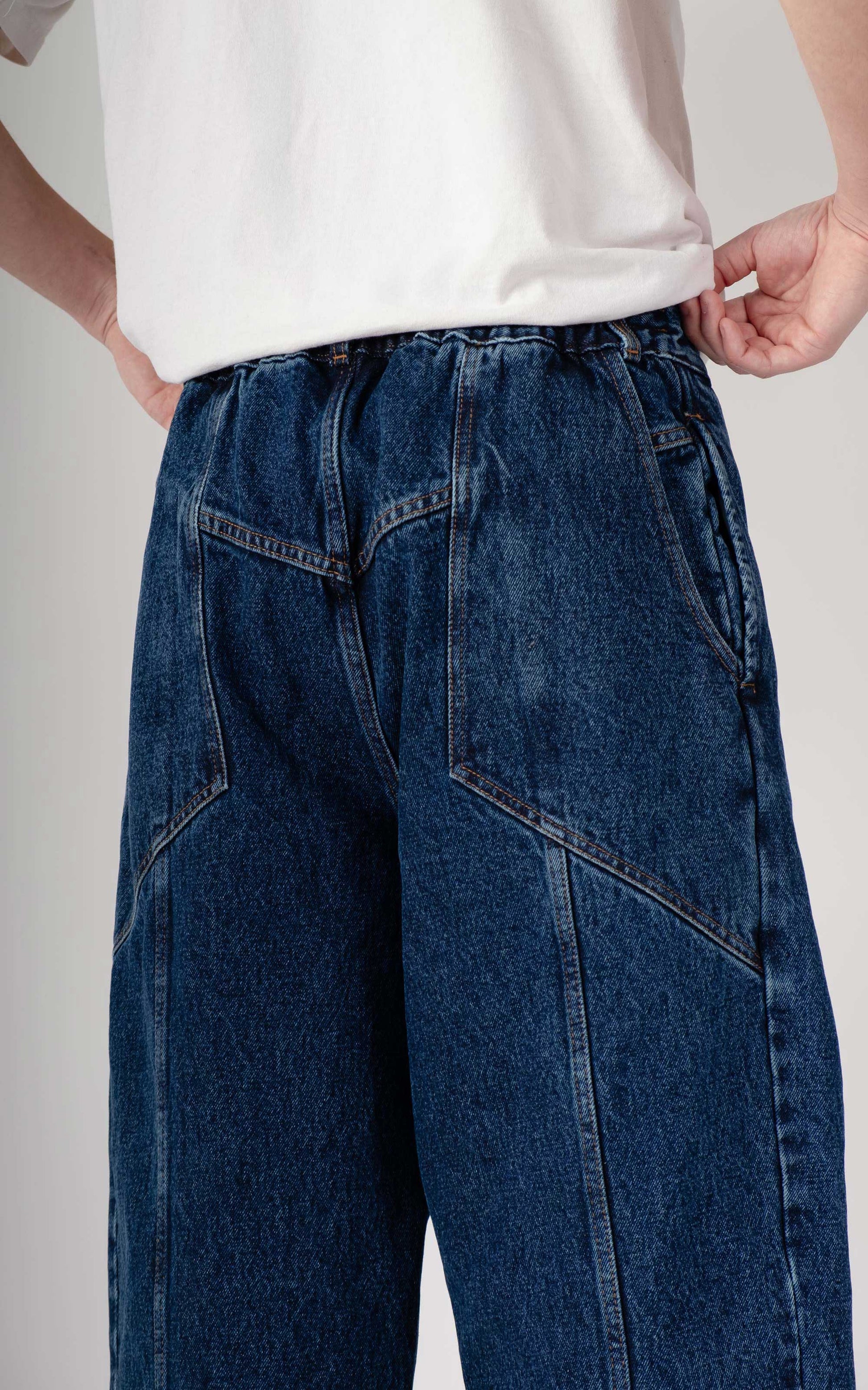 Well, we took this universal posture to design our semi-lateral back pockets. Large, practical, and above all, placed right where your hands naturally want to go.