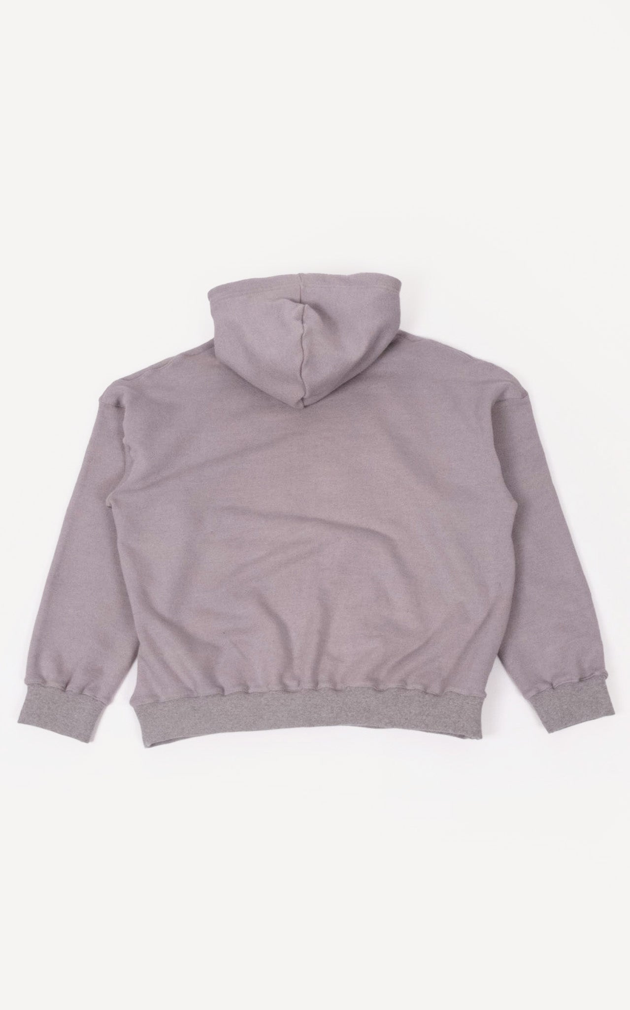 Le Sweat Brodé Gris is made from 100% cotton upcycled fleece . It is a very thick fabric (630g/m² ) : the Sweatshirt weighs more than 1kg! The cut is loose, and the armholes are low. At the bottom of the sweatshirt, the ribbing is not too tight, for better everyday comfort. It is a durable ribbing, with excellent elasticity, which will not move even after numerous washes.