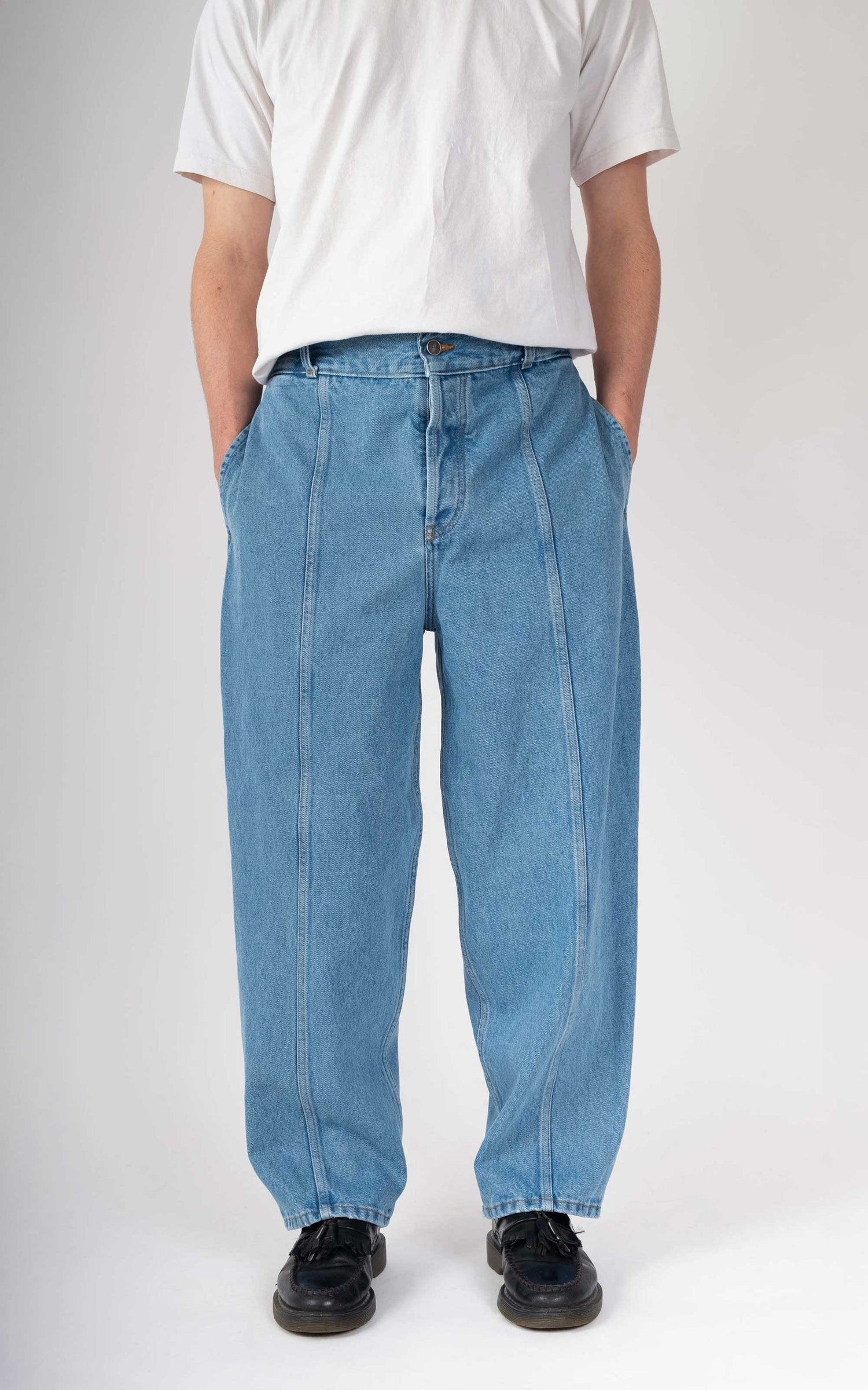 Conçu avec un denim 100 % coton, il offre un tissu épais et résistant pour une tenue impeccable et une coupe ballon super confortable. À l’arrière, deux grandes poches originales apportent une touche unique, tandis que l’avant reste sobre avec deux poches discrètes.
