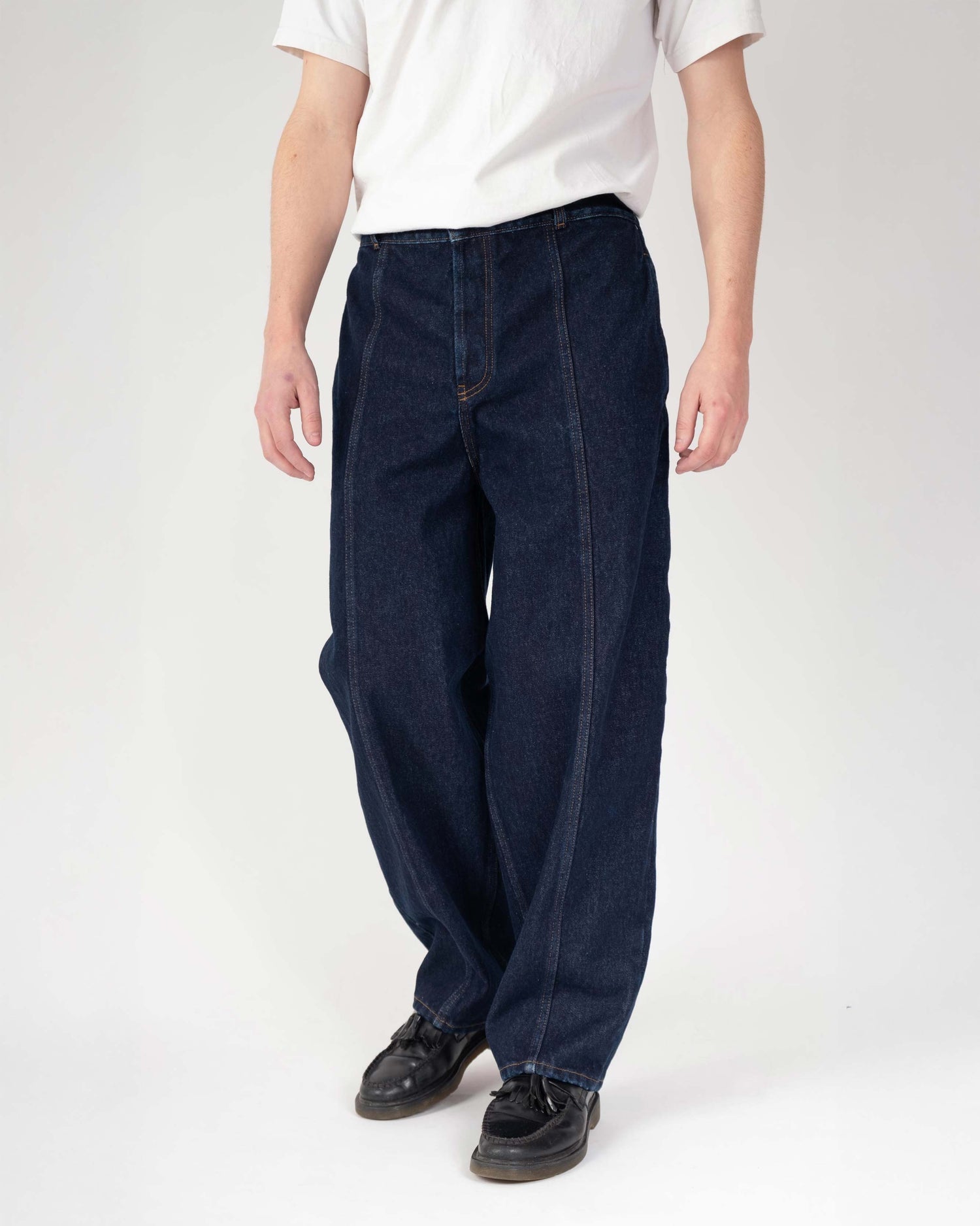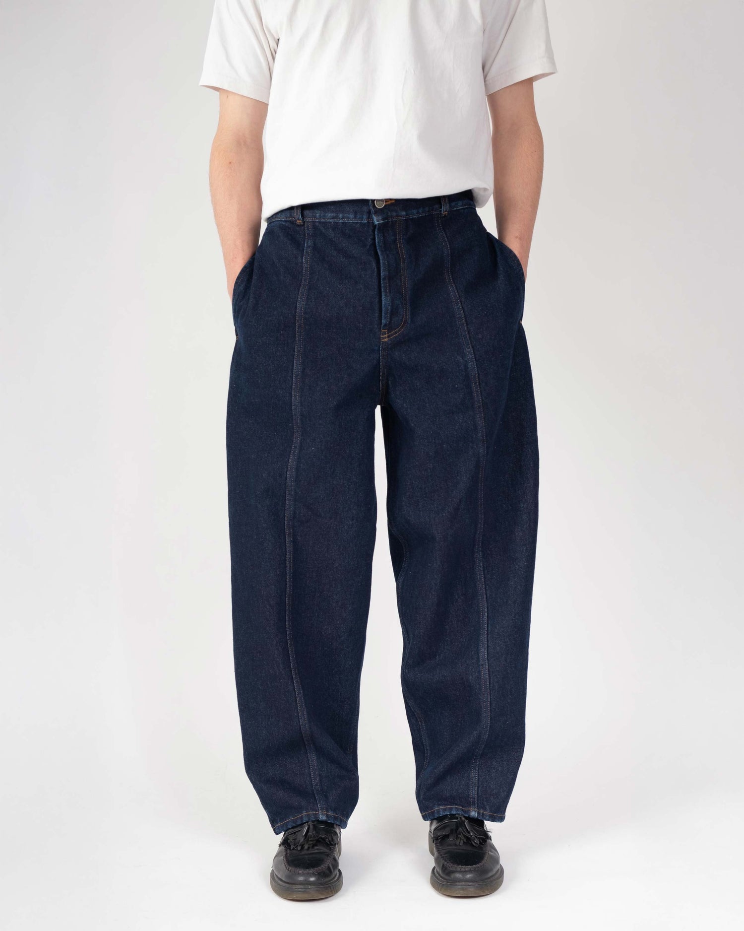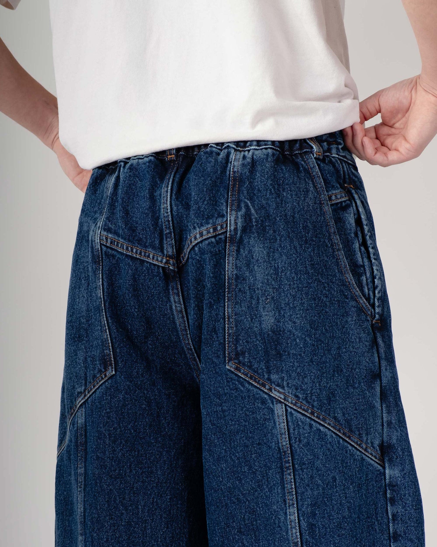 Conçu avec un denim 100 % coton, il offre un tissu épais et résistant pour une tenue impeccable et une coupe ballon super confortable. À l’arrière, deux grandes poches originales apportent une touche unique, tandis que l’avant reste sobre avec deux poches discrètes.